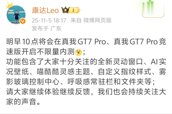 现在只有 GT7 和 GT7 Pro 开了不限量内测,11 月 25 日左右大概率会进入正式版阶段。