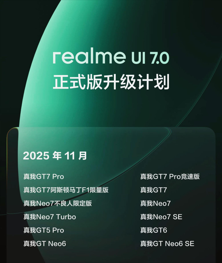 真我这次计划把一批热门机型拉上车:GT7、GT7 Pro、neo7、neo6、GT6、GT5 Pro 等 12 款全都在名单里。